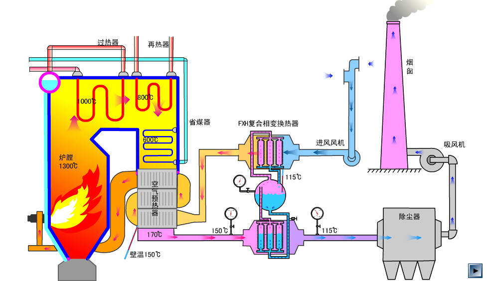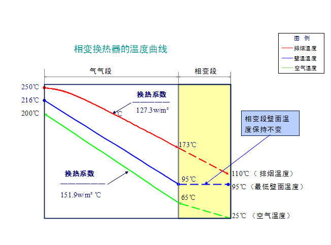 c)实现了换热器金属受热面最低避免温度处于可调可控状态,使相变换热器具有相当幅度的调节能力,适应锅炉燃料品种和传热负荷的变化,使排烟温度和壁面温度保持相对稳定;