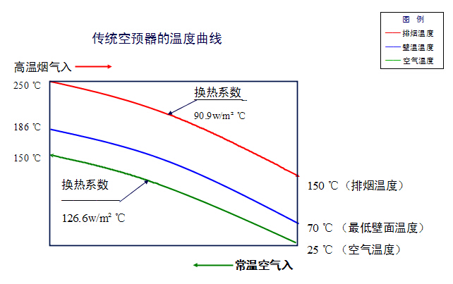 b)在降低排烟温度的同时,保持金属受热面壁面温度处于较高的温度水平,远离酸露的腐蚀区域,从根本上避免了结露腐蚀和堵灰的现象,大幅度降低设备的维护成本;